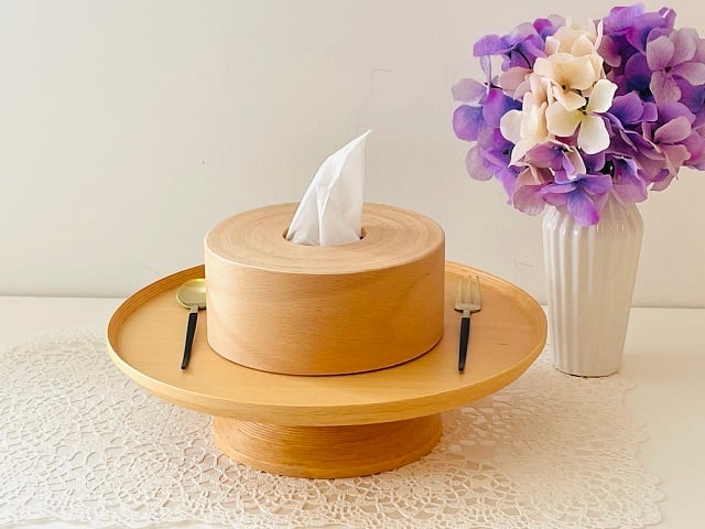●限りある資源を大切にしロスを減らすために、材料の選別をせずに製作しています。木目や節、色みなど風合いが異なる天然木ならではの表情をお楽しみください。