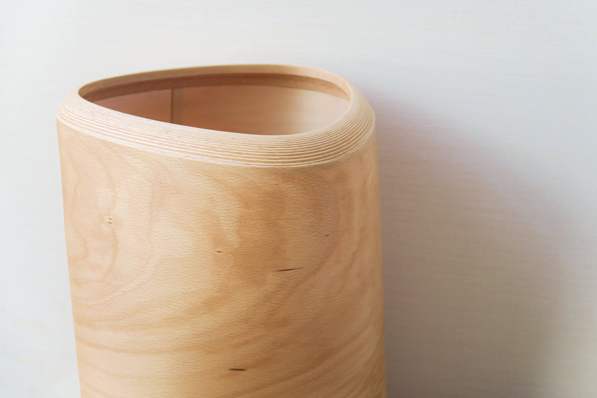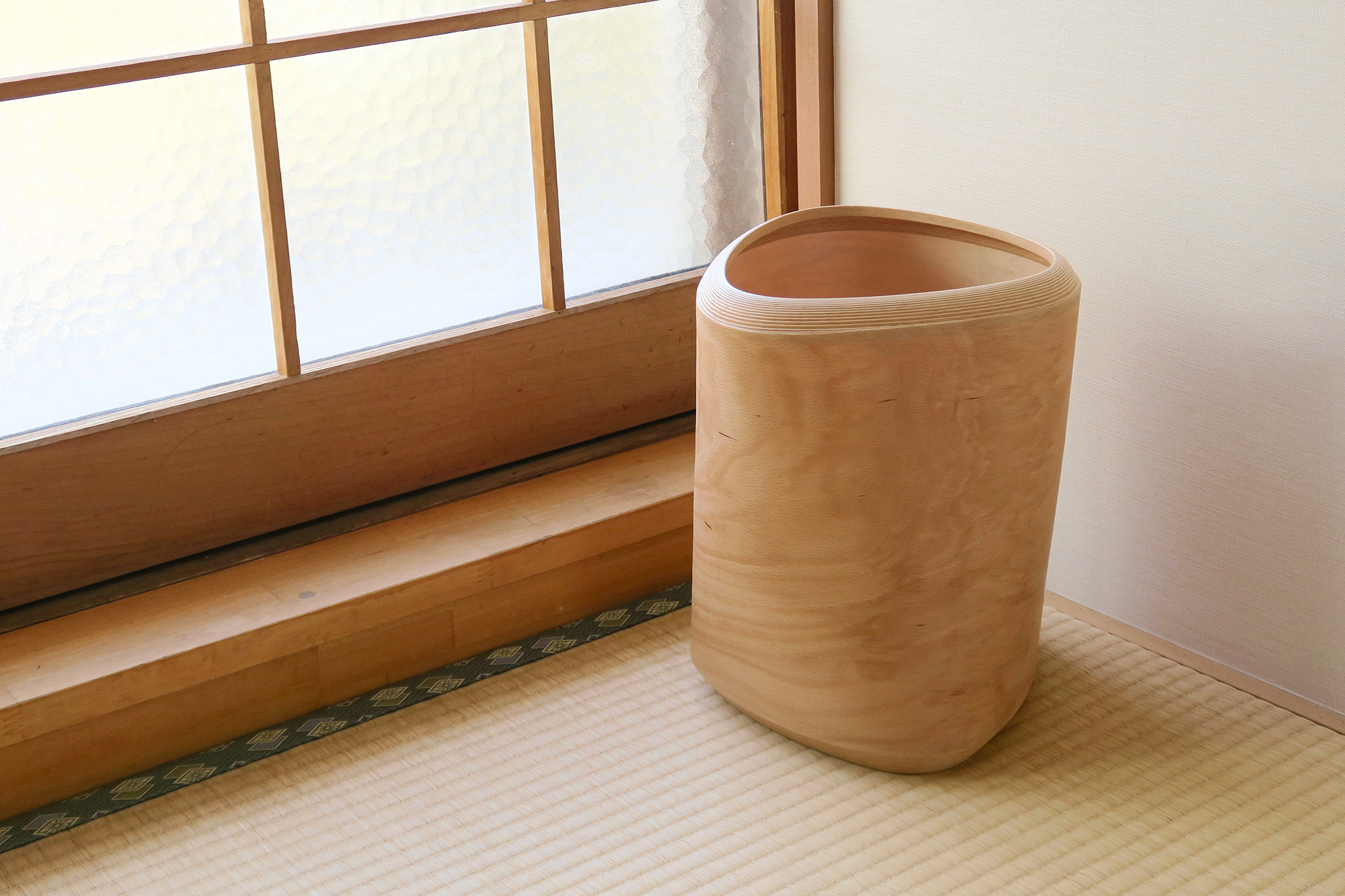 ブナの木の幹のような、くっきりとした濃い「杢目(もくめ)」の材料で製作したダストボックス。