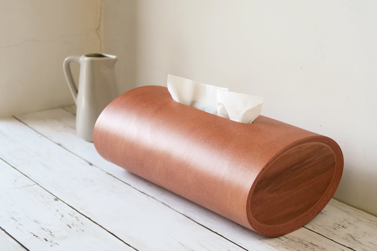 直線的な角型のボックスティッシュを、ブナコの曲線と淡く優しいさくら色が、お部屋を華やかに彩ります。