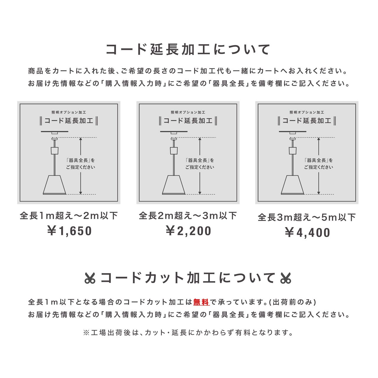 商品をカートに入れた後、ご希望の長さの「コード延長加工」も一緒にカートへお入れください。ご希望の「器具全長」を備考欄にご記入ください。