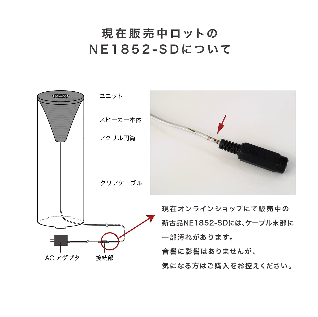 ケーブル末部に一部汚れがございますが、音響には影響はありません。